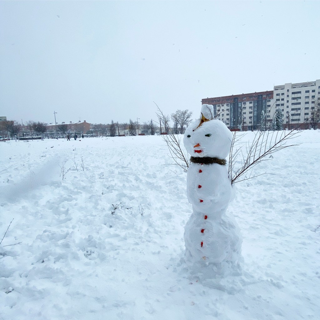 Today (Sunday) is my second full day in Spain, and the country is finally earning its nickname of “Sunny Spain.” When I arrived Friday afternoon, the skies were gray with snow, and the snow continued to fall throughout the day on Saturday. Officials have said that the Madrid region has not received this much snow in over half a century, and almost everyone who lives in the neighborhood has ventured outside to experience this once-in-a-lifetime beauty. Although I did enjoy a short walk yesterday, I have primarily observed the snow from inside the warm apartment — it has a perfect view of a park where many families have made snowmen.